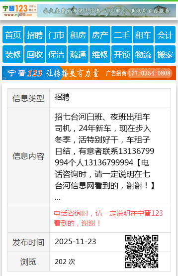 招七台河白班、夜班出租车司机,24年新车,现在步入冬季,活特别好干,车租子日结,有意者联系13136799994个人13136799994 【电话咨询时,请一定说明在七台河信息网看到的,谢谢!】 |