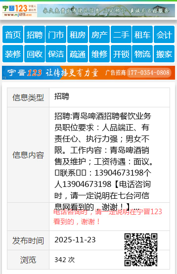 | 防骗提醒: | 七台河信息网(www.qitaihe.cc)提醒您:手工活、网络兼职、刷单,都是骗子!凡以各种名义收取费用的都是骗子!找工作是往兜里挣钱,让你往外掏钱的都是骗子!异地招聘请提高警惕,谨防诈骗! |