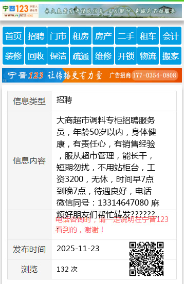 大商超市调料专柜招聘服务员,年龄50岁以内,身体健康,有责任心,有销售经验,服从超市管理,能长干,短期勿扰,不用站柜台,工资3200,无休,时间早7点到晚7点,待遇良好,电话微信同号:13314647080 麻烦好朋友们帮忙转发????????个人13314647080 【电话咨询时,请一定说明在七台河信息网看到的,谢谢!】 |