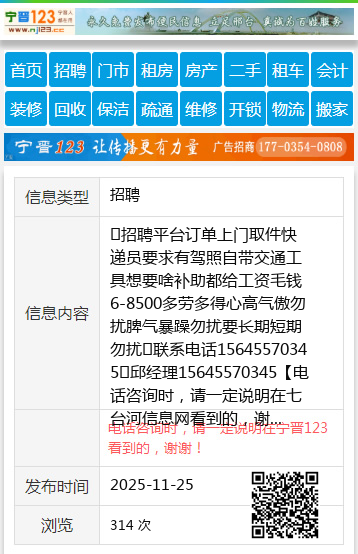招聘平台订单上门取件快递员要求有驾照自带交通工具想要啥补助都给工资毛钱6-8500多劳多得心高气傲勿扰脾气暴躁勿扰要长期短期勿扰联系电话15645570345邱经理15645570345 【电话咨询时,请一定说明在七台河信息网看到的,谢谢!】 |