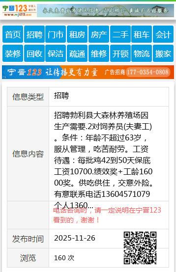 招聘勃利县大森林养殖场因生产需要.2对饲养员(夫妻工)。条件:年龄不超过63岁,服从管理,吃苦耐劳。工资待遇:每批鸡42到50天保底工资10700.绩效奖+工龄16000奖。供吃供住,交意外险。有意联系电话13604571079个人13604571079 【电话咨询时,请一定说明在七台河信息网看到的,谢谢!】 |