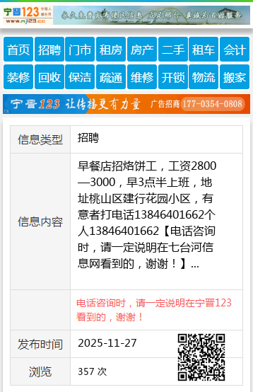| 防骗提醒: | 七台河信息网(www.qitaihe.cc)提醒您:手工活、网络兼职、刷单,都是骗子!凡以各种名义收取费用的都是骗子!找工作是往兜里挣钱,让你往外掏钱的都是骗子!异地招聘请提高警惕,谨防诈骗! |