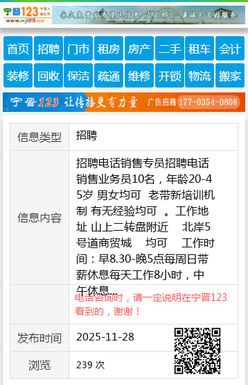 招聘电话销售专员招聘电话销售业务员10名,年龄20-45岁 男女均可 老带新培训机制 有无经验均可 。工作地址 山上二转盘附近 北岸5号道商贸城 均可 工作时间:早8.30-晚5点每周日带薪休息每天工作8小时,中午休息一小时。底薪+满勤2800 综合工资8000+ ,只要你努力,必须有回报。地址:七台河桃山区多伦多联系人:崔先生电话:18904645551联系方式个人18904645551 【电话咨询时,请一定说明在七台河信息网看到的,谢谢!】 |