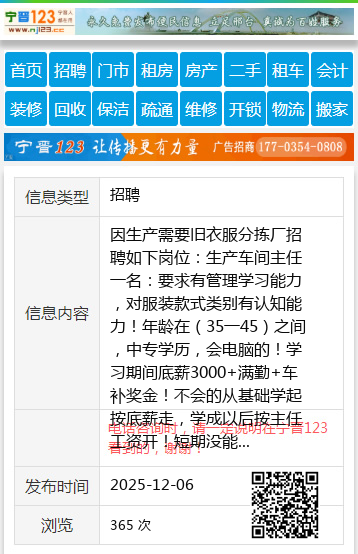 因生产需要旧衣服分拣厂招聘如下岗位:生产车间主任一名:要求有管理学习能力,对服装款式类别有认知能力!年龄在(35一45)之间,中专学历,会电脑的!学习期间底薪3000+满勤+车补奖金!不会的从基础学起按底薪走,学成以后按主任工资开!短期没能力不能吃苦的勿扰!招旧衣服分拣女工若干名,(30一50岁)身体健康底薪2400+满勤300+奖金!以上工种只招长期工!短工勿扰!招旧衣服女主播5名(30一40岁)月薪3千一1万!公司晋升空间大,车间主任,厂长一职等你来,只要你有能力,利丰公司永远给你施展的空间!选择利丰,让你富贵一生!!试用期3天。额满为止!早7:30一16:30中午管饭!厂址:新兴区宝泰隆路26号。公交路线:坐(走葫芦头沟的)1路公交车到(家居广场)站点前走100米恒阳科技公司红大门院内。☎️13946506087王总13946506087 【电话咨询时,请一定说明在七台河信息网看到的,谢谢!】 |