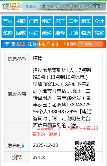 招炒家常菜副灶1人,7点到晚9点(13点到16点休息)早餐面案1人(3点到下午2点)细节打电话,地址:二转盘附近,景丰路63号(景丰家园)老双华13804872999个人13804872999 【电话咨询时,请一定说明在七台河信息网看到的,谢谢!】 |