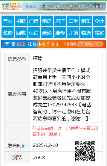 招服装带货主播工作:模式简单易上手一天四个小时全职兼职皆可不用坐班要求:40岁以下身高体重不限有服装销售经验者优先底薪加提成先生13029792933 【电话咨询时,请一定说明在七台河信息网看到的,谢谢!】 |