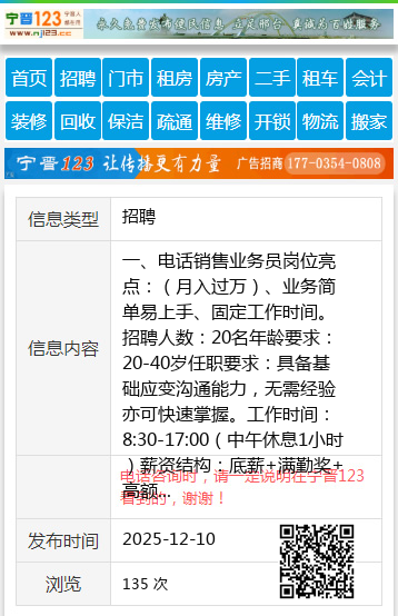 一、电话销售业务员岗位亮点:(月入过万)、业务简单易上手、固定工作时间。招聘人数:20名年龄要求:20-40岁任职要求:具备基础应变沟通能力,无需经验亦可快速掌握。工作时间:8:30-17:00(中午休息1小时)薪资结构:底薪+满勤奖+高额业务提成(多劳多得,收入无上限)二、无人售货柜商品标注员岗位亮点:时间灵活(兼职/全职均可)、日结薪资、低门槛高适配(适合学生/宝妈/副业人群)。招聘人数:不限(男女不限)年龄要求:18-45岁任职要求:无色盲,会基础电脑操作(鼠标、键盘),公司提供免费培训,考核通过即可上岗。工作优势:办公室电脑办公,压力小、难度低,熟练后轻松胜任;多劳多得,月薪2000-5000+,收入上不封顶。工作地点:新兴区商贸博览城E7-124桃山区德政雅居旁边写字楼联系方式:13846422224(可咨询岗位详情或预约面试)李先生13846422224 【电话咨询时,请一定说明在七台河信息网看到的,谢谢!】 |