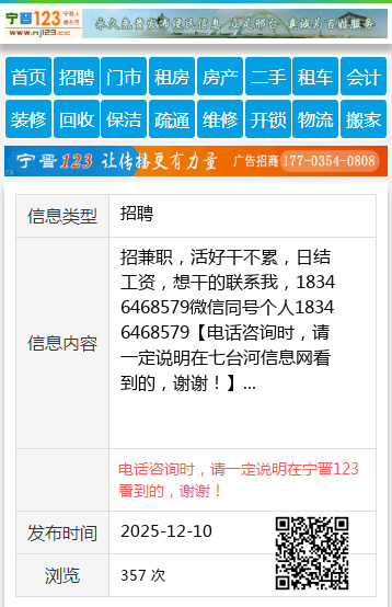 招兼职,活好干不累,日结工资,想干的联系我,18346468579微信同号个人18346468579