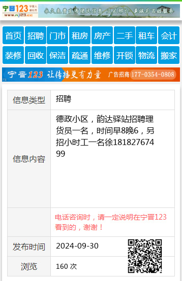 德政小区,韵达驿站招聘理货员一名,时间早8晚6,另招小时工一名徐18182767499