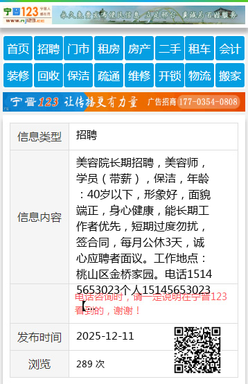 美容院长期招聘,美容师,学员(带薪),保洁,年龄:40岁以下,形象好,面貌端正,身心健康,能长期工作者优先,短期过度勿扰,签合同,每月公休3天,诚心应聘者面议。工作地点:桃山区金桥家园。电话15145653023个人15145653023 【电话咨询时,请一定说明在七台河信息网看到的,谢谢!】 |