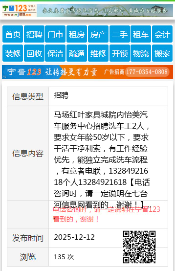 马场红叶家具城院内怡美汽车服务中心招聘洗车工2人,要求女年龄50岁以下,要求干活干净利索,有工作经验优先,能独立完成洗车流程,有意者电联,13284921618个人13284921618 【电话咨询时,请一定说明在七台河信息网看到的,谢谢!】 |