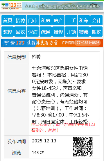 七台河新兴区急招女性电话客服! 本地直招,月薪2300元按时发,无拖欠~要求:女性18-45岁,声音亲和,普通话流利,沟通清晰,有耐心责任心,有无经验均可(带薪培训)。工作时间:早8:30-晚17:00,午休1.5小时,周日固定休。工作轻松无销售压力,办公环境舒适。联系人:X经理,电话13946535559微信同号),有意速联预约面试!个人13946535559 【电话咨询时,请一定说明在七台河信息网看到的,谢谢!】 |