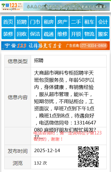 大商超市调料专柜招聘半天班包货服务员,年龄50岁以内,身体健康,有销售经验,服从超市管理,能长干,短期勿扰,不用站柜台,工资面议,早班7点到下午1点,晚班1点到8点,待遇良好,电话微信同号:13314647080 麻烦好朋友们帮忙转发????????个人13314647080 【电话咨询时,请一定说明在七台河信息网看到的,谢谢!】 |