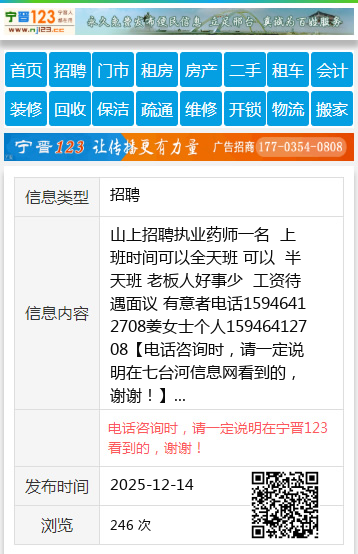 山上招聘执业药师一名 上班时间可以全天班 可以 半天班 老板人好事少 工资待遇面议 有意者电话15946412708姜女士个人15946412708 【电话咨询时,请一定说明在七台河信息网看到的,谢谢!】 |