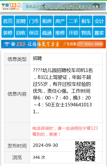 ????幼儿园招聘校车司机1名,B1以上驾驶证,年龄不超过55岁,有开过校车经验的优先,责任心强。工作时间早6:00~7:40,晚3:20~4:50王女士15946410131 【电话咨询时,请一定说明在七台河信息网看到的,谢谢!】 |