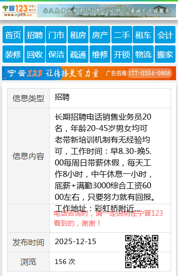 长期招聘电话销售业务员20名,年龄20-45岁男女均可老带新培训机制有无经验均可,工作时间:早8.30-晚5.00每周日带薪休假,每天工作8小时,中午休息一小时,底薪+满勤3000综合工资6000左右,只要努力就有回报。工作地址:彩虹桥附近 13314643456个人13314643456 【电话咨询时,请一定说明在七台河信息网看到的,谢谢!】 |