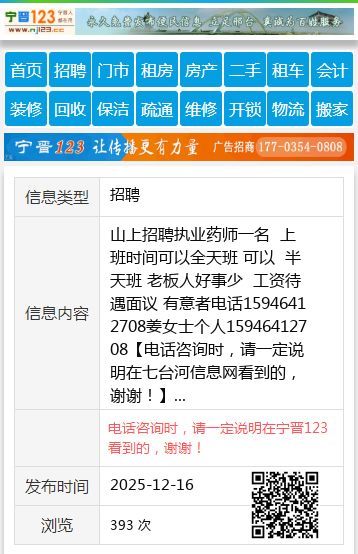 山上招聘执业药师一名 上班时间可以全天班 可以 半天班 老板人好事少 工资待遇面议 有意者电话15946412708姜女士个人15946412708 【电话咨询时,请一定说明在七台河信息网看到的,谢谢!】 |