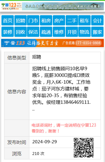 招聘线上销售顾问10名早9晚5,底薪3000➕提成➕绩效奖金,月入6K-10K。工作地点:茄子河东方建材城,要求年龄20-35,有销售经验优先。侯经理13846469111 【电话咨询时,请一定说明在七台河信息网看到的,谢谢!】 |