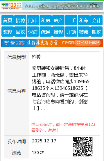 【电话咨询时,请一定说明在七台河信息网看到的,谢谢!】