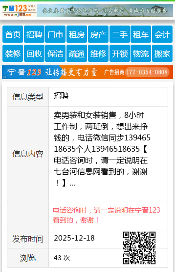 【电话咨询时,请一定说明在七台河信息网看到的,谢谢!】