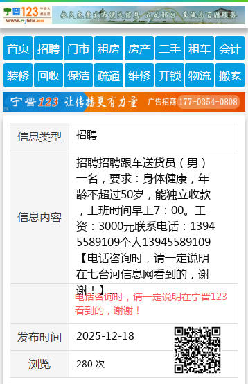| 防骗提醒: | 七台河信息网(www.qitaihe.cc)提醒您:手工活、网络兼职、刷单,都是骗子!凡以各种名义收取费用的都是骗子!找工作是往兜里挣钱,让你往外掏钱的都是骗子!异地招聘请提高警惕,谨防诈骗! |