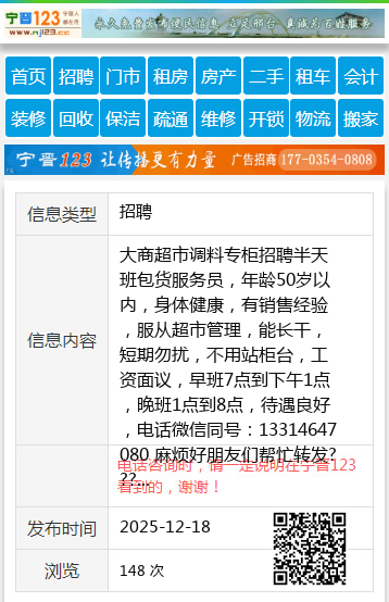 大商超市调料专柜招聘半天班包货服务员,年龄50岁以内,身体健康,有销售经验,服从超市管理,能长干,短期勿扰,不用站柜台,工资面议,早班7点到下午1点,晚班1点到8点,待遇良好,电话微信同号:13314647080 麻烦好朋友们帮忙转发????????个人13314647080 【电话咨询时,请一定说明在七台河信息网看到的,谢谢!】 |