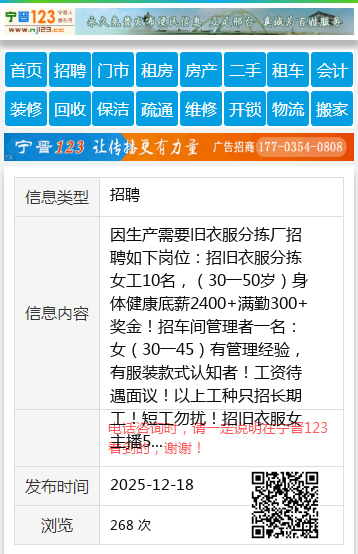 因生产需要旧衣服分拣厂招聘如下岗位:招旧衣服分拣女工10名,(30一50岁)身体健康底薪2400+满勤300+奖金!招车间管理者一名:女(30一45)有管理经验,有服装款式认知者!工资待遇面议!以上工种只招长期工!短工勿扰!招旧衣服女主播5名(30一40岁)月薪3千一1万!公司晋升空间大,车间主任,厂长一职等你来,只要你有能力,利丰公司永远给你施展的空间!选择利丰,富贵一生!!试用期3天。额满为止!早7:30一16:30中午管饭!厂址:新兴区宝泰隆路26号。公交路线:坐(走葫芦头沟的)1路公交车到(家居广场)站点前走100米恒阳科技公司红大门院内。☎️13946506087王总13946506087 【电话咨询时,请一定说明在七台河信息网看到的,谢谢!】 |
