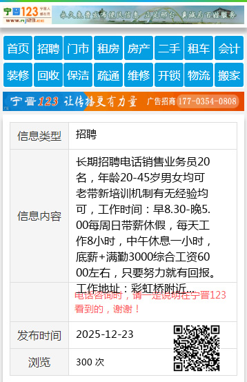 长期招聘电话销售业务员20名,年龄20-45岁男女均可老带新培训机制有无经验均可,工作时间:早8.30-晚5.00每周日带薪休假,每天工作8小时,中午休息一小时,底薪+满勤3000综合工资6000左右,只要努力就有回报。工作地址:彩虹桥附近 13314643456个人13314643456 【电话咨询时,请一定说明在七台河信息网看到的,谢谢!】 |