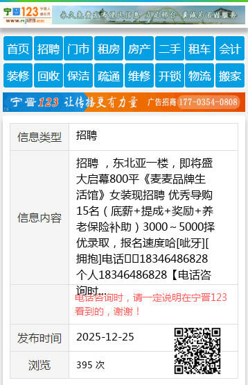 招聘 ,东北亚一楼,即将盛大启幕800平《麦麦品牌生活馆》女装现招聘 优秀导购15名(底薪+提成+奖励+养老保险补助)3000~5000择优录取,报名速度哈[呲牙][拥抱]电话☎️18346486828个人18346486828 【电话咨询时,请一定说明在七台河信息网看到的,谢谢!】 |