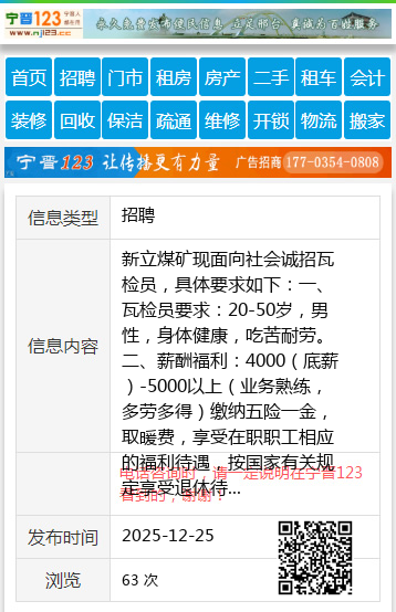新立煤矿现面向社会诚招瓦检员,具体要求如下:一、瓦检员要求:20-50岁,男性,身体健康,吃苦耐劳。二、薪酬福利:4000(底薪)-5000以上(业务熟练,多劳多得)缴纳五险一金,取暖费,享受在职职工相应的福利待遇,按国家有关规定享受退休待遇。工作制:上一宿歇两天一宿北山,七星花园,北岸,新立煤矿是您很好的选择。私企频繁放假,别在浪费时间了,国企稳定,年纪大了,有个保障。电话(微信同步):许立东13946548503联系时间:早六点~早八点,下午两点~晚八点个人13946548503 【电话咨询时,请一定说明在七台河信息网看到的,谢谢!】 |