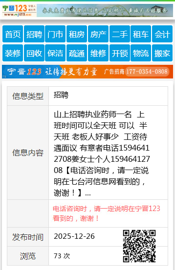 山上招聘执业药师一名 上班时间可以全天班 可以 半天班 老板人好事少 工资待遇面议 有意者电话15946412708姜女士个人15946412708 【电话咨询时,请一定说明在七台河信息网看到的,谢谢!】 |