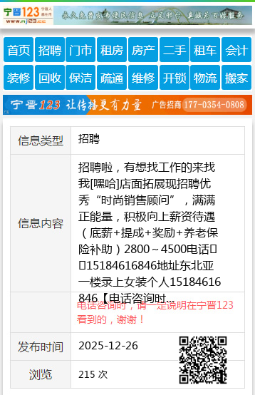 招聘啦,有想找工作的来找我[嘿哈]店面拓展现招聘优秀“时尚销售顾问”,满满正能量,积极向上薪资待遇(底薪+提成+奖励+养老保险补助)2800~4500电话☎️15184616846地址东北亚一楼录上女装个人15184616846 【电话咨询时,请一定说明在七台河信息网看到的,谢谢!】 |