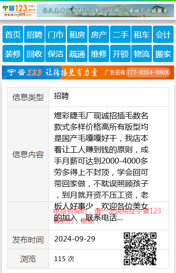 煜彩睫毛厂现诚招插毛数名款式多样价格高所有版型均是国产毛嘎嘎好干,我店本着让工人赚到钱的原则,成手月薪可达到2000-4000多劳多得上不封顶,学会回可带回家做,不耽误照顾孩子,到月就开资不压工资,老板人好事少,欢迎各位美女的加入,联系电话15946416863微信电话同步地址:水电厂6号楼4单元403室管女士15946416863 【电话咨询时,请一定说明在七台河信息网看到的,谢谢!】 |