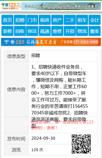 1、招聘快递收件业务员,要求40岁以下,自带微型车,懂微信及网购,能长期工作,短期不用,正堂工作6000+,努力工作7000+,拼命工作可过万。能接受了服务行业的辛苦请拨打15645570345非诚成勿扰2、招聘快递员派送商服。要求自带微型车,能长期工作(准备干三月俩月的勿扰)。货有很多,只要肯辛苦就能得到相应的报酬,心高气傲者勿扰,脾气暴躁者勿扰。电话:13946516433/156455703453、招聘快递库房分拣一名,工资1500.每天负责挑件,早五点-9/10点左右,一般4小时左右就下班了。电话15645570345刘经理15645570345 |