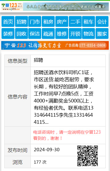 招聘送酒水饮料司机C1证,市区送货.能吃苦耐劳,要求长期,有较好的团队精神,工作时间早7点晚5点,工资4000+满勤奖金5000以上,有经验者优先。联系电话13314644115李先生13314644115 【电话咨询时,请一定说明在七台河信息网看到的,谢谢!】 |