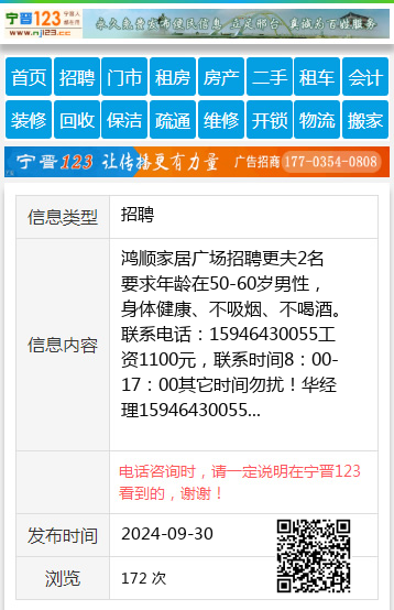 鸿顺家居广场招聘更夫2名要求年龄在50-60岁男性,身体健康、不吸烟、不喝酒。联系电话:15946430055工资1100元,联系时间8:00-17:00其它时间勿扰!华经理15946430055 【电话咨询时,请一定说明在七台河信息网看到的,谢谢!】 |