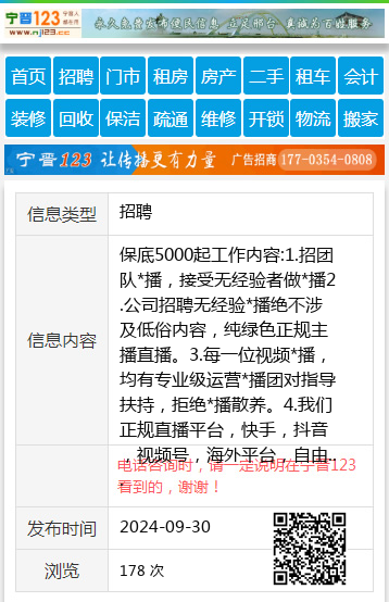 保底5000起工作内容:1.招团队*播,接受无经验者做*播2.公司招聘无经验*播绝不涉及低俗内容,纯绿色正规主播直播。3.每一位视频*播,均有专业级运营*播团对指导扶持,拒绝*播散养。4.我们正规直播平台,快手,抖音,视频号,海外平台,自由了解*播真实情况。薪资待遇:1.无责任保底月薪5000起+*播后台提成+*播奖励,*播月入过万属于正常水平,*播薪资上不封顶。2.外地主播包食宿,3.公司提供高端直播设备,*播化妆直播指导,*播艺术照拍摄宣传等等。4.无经验*播也可以做,公司为*播免费提供系统跟踪培训,运营帮扶指导。5.所有新入职的*播都会有新人*播流量扶持,不用担心流量问题。6.*播工作时间:每天六个小时,中间休息40分中,时间自由福利待遇:定期团建,1对1孵化,年底福利!工作职责:1.*播在平台上进行直播平台的互动,门槛低,工作轻松自由。2.*播自己维护自己直播间的秩序,活跃直播间氛围,同时都会有运营配合*播直播任职要求:1.需年龄18到30周岁。2.*播有无经验均可,欢迎加入我们团队特此声明:公司承诺无任何收费项目,不收取任何费用。电话微信:13204645200plc0907王先生13204645200 【电话咨询时,请一定说明在七台河信息网看到的,谢谢!】 |