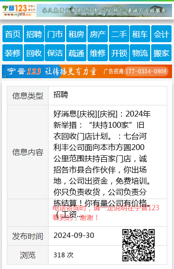好消息[庆祝][庆祝]:2024年新举措:“扶持100家”旧衣回收门店计划。:七台河利丰公司面向本市方圆200公里范围扶持百家门店,诚招各市县合作伙伴,你出场地,公司出资金,免费培训。你只负责收货,公司负责分拣结算!你有量公司有价格。(工资+利润)先到先得欢迎想创业的志同道合的人[跳跳][跳跳]加入利丰公司一起合作共赢!!!咨询电话:13945599685张总13945599685 |