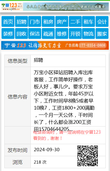 万宝小区驿站招聘入库出库客服,工作简单好操作,老板人好,事儿少。要求万宝小区附近女性,年龄45岁以下,工作时间早8晚5或者早10晚7,工资1800+200满勤,一个月一天公休,干时间长了,什么都会涨200工资田15704644205 【电话咨询时,请一定说明在七台河信息网看到的,谢谢!】 |