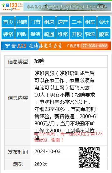 晚班客服(晚班培训成手后可以在家工作,家里必须有电脑可以上网)招聘人数:10人(男女不限)招聘要求:电脑打字35字/分以上,年龄23至40岁,有简单的销售经验。薪资待遇:2000-6800元/月,当月不缺勤不旷工保底2000,工龄奖+岗位津贴+绩效+奖金。交养老保险。联系电话/信:15145693088孟总15145693088 【电话咨询时,请一定说明在七台河信息网看到的,谢谢!】 |