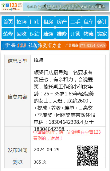 领姿门店招导购一名要求有责任心,有亲和力,会说爱笑,能长期工作的小仙女年龄:25~35岁1.65年轻貌美的女士…大班,底薪2600,+提成+养老+连单+日高奖+季度奖+团体奖等带薪休假电话:18304642398才女士18304642398 【电话咨询时,请一定说明在七台河信息网看到的,谢谢!】 |