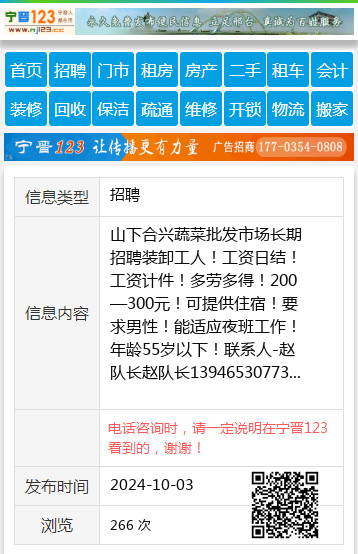 山下合兴蔬菜批发市场长期招聘装卸工人!工资日结!工资计件!多劳多得!200—300元!可提供住宿!要求男性!能适应夜班工作!年龄55岁以下!联系人-赵队长赵队长13946530773 【电话咨询时,请一定说明在七台河信息网看到的,谢谢!】 |