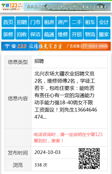 北兴农场大疆农业招聘文员2名,维修师傅2名,学徒工若干,包吃住要求:能吃苦有责任心有一定的沟通能力动手能力强18-40男女不限工资面议!刘先生13664646474 【电话咨询时,请一定说明在七台河信息网看到的,谢谢!】 |