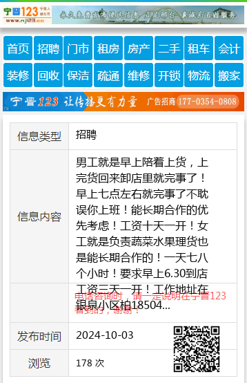 男工就是早上陪着上货,上完货回来卸店里就完事了!早上七点左右就完事了不耽误你上班!能长期合作的优先考虑!工资十天一开!女工就是负责蔬菜水果理货也是能长期合作的!一天七八个小时!要求早上6.30到店工资三天一开!工作地址在银泉小区柏18504645127 【电话咨询时,请一定说明在七台河信息网看到的,谢谢!】 |