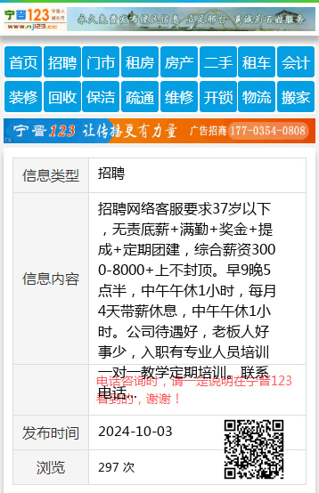 招聘网络客服要求37岁以下,无责底薪+满勤+奖金+提成+定期团建,综合薪资3000-8000+上不封顶。早9晚5点半,中午午休1小时,每月4天带薪休息,中午午休1小时。公司待遇好,老板人好事少,入职有专业人员培训一对一教学定期培训。联系电话18945599538,微信18945599538工作地点:茄子河新东方B区18号楼后独栋二层商服人事18945599538 【电话咨询时,请一定说明在七台河信息网看到的,谢谢!】 |