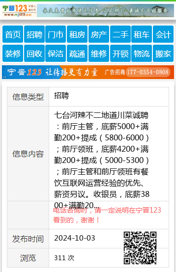 七台河辣不二地道川菜诚聘:前厅主管,底薪5000+满勤200+提成(5800-6000);前厅领班,底薪4200+满勤200+提成(5000-5300);前厅主管和前厅领班有餐饮互联网运营经验的优先、薪资另议。收银员,底薪3800+满勤200+提成(4500-4800);服务员,底薪4000+满勤200+提成(4800-5100);传菜员,3800+满勤200+提成(4300-4600);以上岗位成手优先、不限男女,年龄21-45岁。员工待遇,供吃供住,每月满勤带薪休假2天,生日和节日福利,工龄6个月涨50元,季度和年度经营业绩奖金,合理晋升机制。联系人:祝先生联系电话:19845570003、15846195888工作地址:七台河市桃山区文华路92号祝先生19845570003 【电话咨询时,请一定说明在七台河信息网看到的,谢谢!】 |