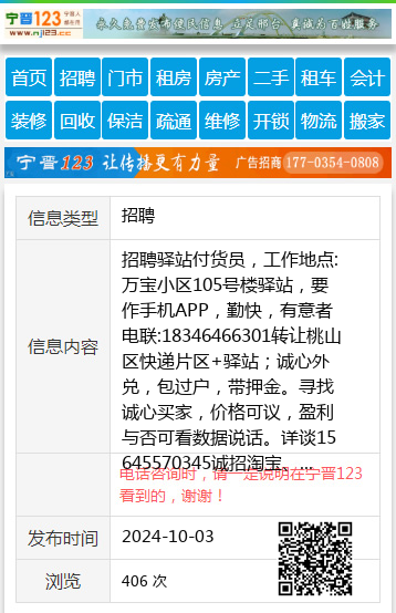 招聘驿站付货员,工作地点:万宝小区105号楼驿站,要作手机APP,勤快,有意者电联:18346466301转让桃山区快递片区+驿站;诚心外兑,包过户,带押金。寻找诚心买家,价格可议,盈利与否可看数据说话。详谈15645570345诚招淘宝、微商、电商合作,有量自然有优惠。依旧速度快,依旧服务好,依旧价格优,值得信赖。电话微信同步15645570345李经理15645570345 【电话咨询时,请一定说明在七台河信息网看到的,谢谢!】 |