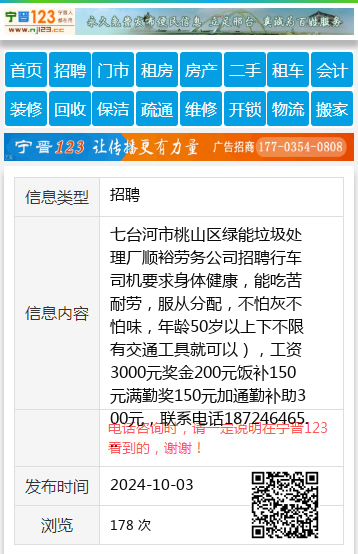 电话咨询时,请一定说明在七台河信息网看到的,谢谢!