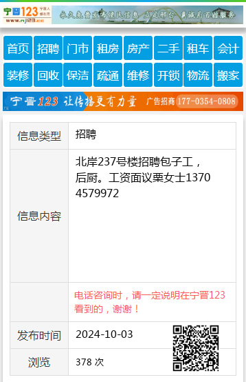 北岸237号楼招聘包子工,后厨。工资面议栗女士13704579972