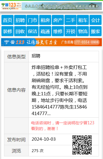 炸串招聘捡串+外卖打包工,活轻松!没有堂食,不用刷碗刷盘,要求干活利索。有无经验均可。晚上10点到晚上11点,只要长期不要短期,地址步行街中段,电话15846414777陈先生15846414777 【电话咨询时,请一定说明在七台河信息网看到的,谢谢!】 |